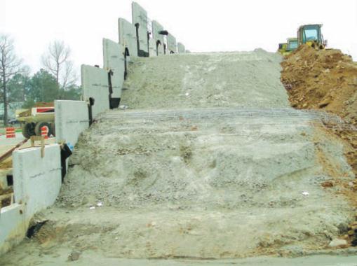 Install backfill and soil reinforcement mats as described in Step III – Backfill.