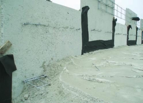 Install supplied filter fabric with adhesive over the vertical and horizontal joints.